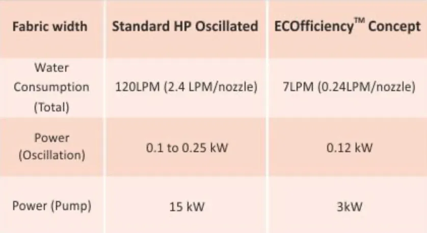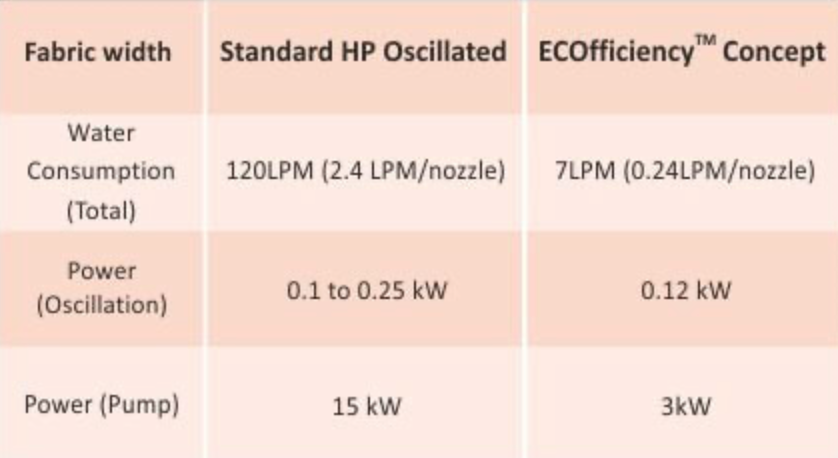 Концепция ECOfficiency™ была разработана для поддержания чистоты сушильных сеток с использованием небольшого количества воды и воздуха. Стандартные спрыски высокого давления на формующей сетке и прессовых сукнах потребляют очень много воды. Используя концепцию ECOfficiency™, можно снизить потребление воды в этой области до 1/10 и оставить 90 процентов воды для других задач.