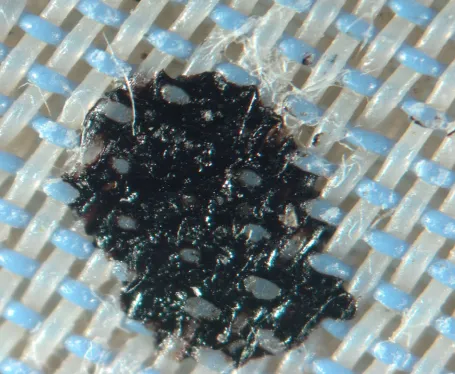 На фабрике наблюдались серьёзные загрязнения формующей сетки (ранее обозначаемой как wire) на всех машинах, что приводило к дефектам полотна и жалобам на качество. Загрязнения, изображённые на рисунке 4, представляли собой тёмный, смолоподобный материал, плотно сцеплявшийся с сеткой.