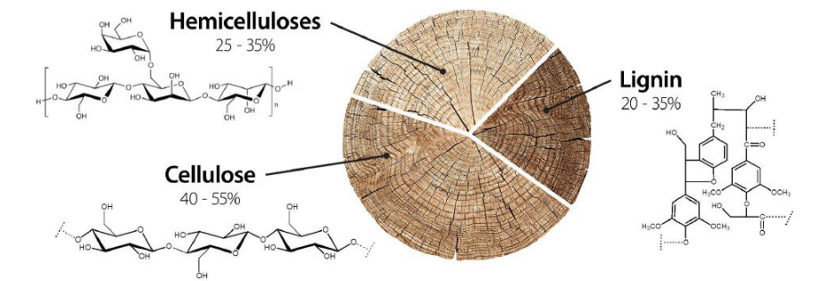 Рисунок 1. Основные компоненты древесной биомассы. |