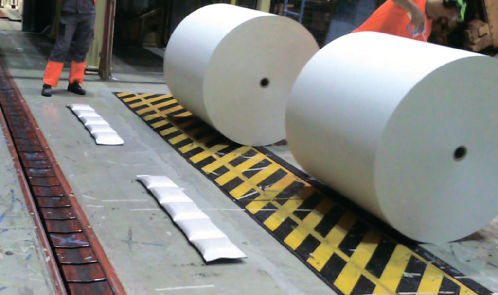 Обычно на бумажных фабриках применяют стальные стопоры, пневматические или механические приемники для фиксации рулонов, скатывающихся по наклонным поверхностям. Такие рулоны двигаются бесконтрольно, набирая скорость перед ударом о жесткое стопорное оборудование. В результате они могут сильно отскакивать назад, создавая потенциально опасную рабочую среду, повышая вероятность повреждения рулонов и увеличивая время их стабилизации.