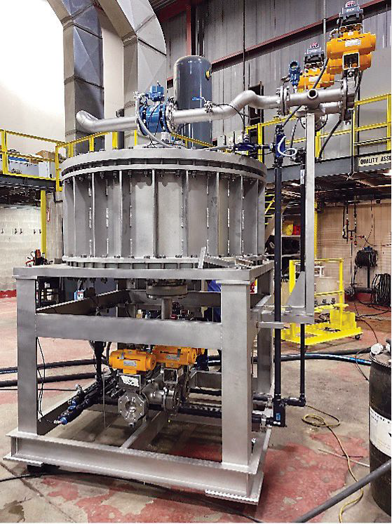 Затем раствор золы перекачивается через импульсный фильтр, где удаляются нерастворимые твердые частицы, такие как несгоревший углерод и непрореагировавшие металлические оксиды. Около одного раза в час фильтр проходит короткий цикл обратного промыва, чтобы сбросить твердые частицы и очистить мембраны.