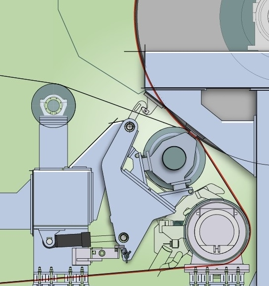 Рисунок 1. Стандартный крещен формер с прогоном бумажных листов (показано красным цветом).