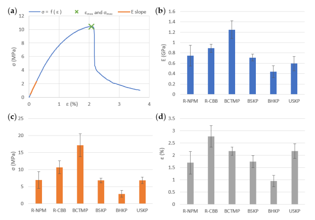 Механические свойства формованных изделий существенно зависят от типа волокон. Эти свойства включают прочность на разрыв, гибкость и способность сопротивляться различным видам механических нагрузок. Крафт-волокна характеризуются гладкой поверхностью и низким содержанием примесей благодаря химической очистке. Однако удаление лигнина и гемицеллюлозы делает эти волокна жесткими и менее гибкими, что приводит к их сниженной прочности при испытаниях на разрыв и растяжение. В результате изделия из таких волокон более склонны к образованию трещин и разрывов при механических воздействиях. Переработанные волокна демонстрируют отличные механические характеристики, что связано с их предварительной обработкой и наличием остатков клеевых и связующих веществ. Эти добавки и процессы переработки увеличивают межволоконные связи, повышая эластичность и прочность конечного продукта. Формованные изделия из переработанных волокон устойчивы к разрывам, имеют более высокие показатели механической прочности, лучше сохраняют форму и целостность при транспортировке и использовании (см. результаты испытаний на рисунке 1).