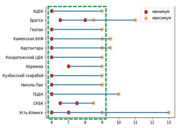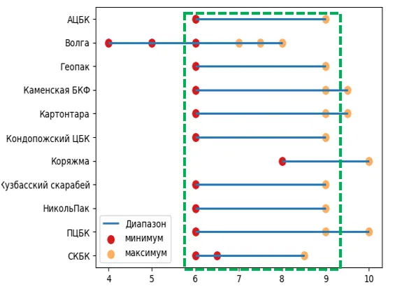 В рамках второго этапа были проведены глубокие исследования текущих технических условий (ТУ), используемых ведущими производителями тарного картона. Анализ позволил выявить общие критерии оценки качества продукции и границы показателей качества.