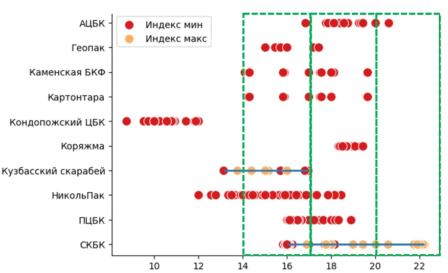 - Анализ и выявление общих диапазонов показателей качества.