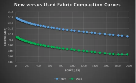 Рис. 3. Сравнение сжатия новых и использованных полотен под нагрузкой