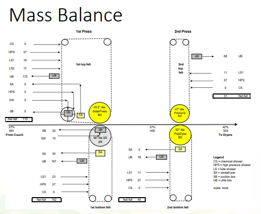 Материальные балансы измеряют приток и отток в системе прессования. Точное измерение сухих веществ на гауч-вале (couch solids) имеет критически важное значение для корректности материального баланса.