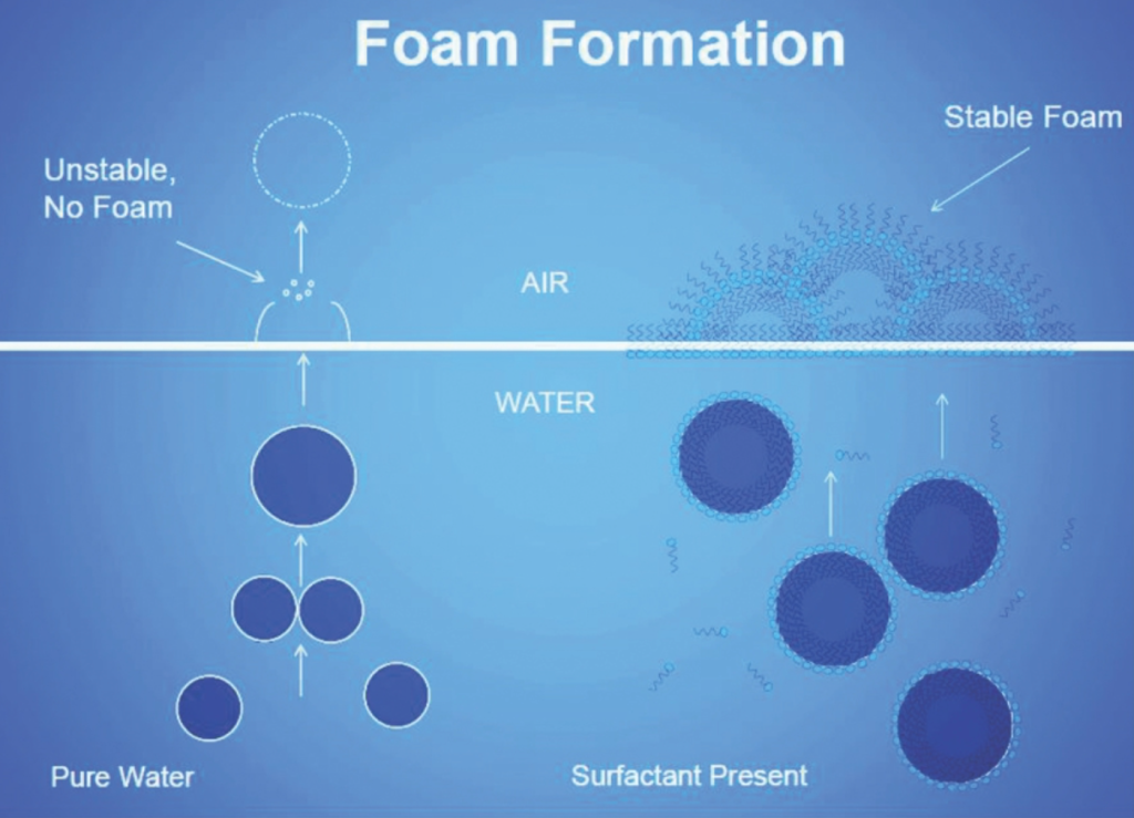 ПАВ приводят к повышенному пенообразованию. Поверхностно-активные вещества (ПАВ) находятся в жидкой фазе: в процессе варки целлюлозы лигнин омыляется при высокой температуре и pH. В производстве бумаги такие добавки как химикаты для повышения прочности в сухом и мокром состоянии, для поверхностной проклейки и крахмал, являются примерами химикатов, которые способствуют образованию воздуха и пены.