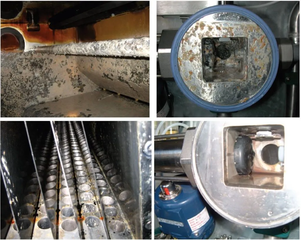 Рисунок 1. Отложения в БДМ для производства тиссью, указывающие на присутствие бактерий и грибков, а также химического материала.