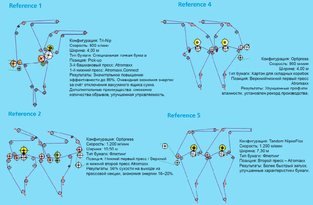 Благодаря модульной конструкции Atromaxx обладает высокой универсальностью в применении для различных типов бумаги и диапазонов скоростей. В сочетании с подходящим нетканым слоем он подходит для любой бумагоделательной машины и конфигурации прессового узла.