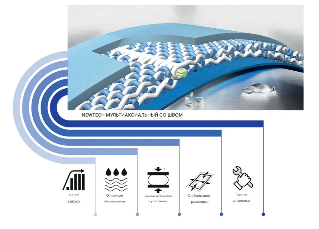 Концепция Atromaxx основана на многоосевых несущих модулях, обеспечивающих структуру, которая по сути является несжимаемой. С одной стороны, это позволяет сохранять заданный объем пор на протяжении всего срока службы сукна, а с другой – открытые дренажные каналы способны эффективно отводить большие объемы воды.