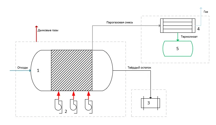 Рисунок 1. Общая схема термолиза отходов в реакторе периодического типа действия
