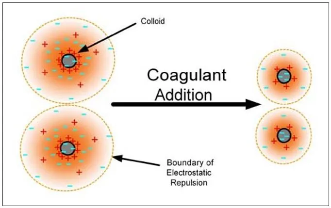 Рисунок 1. Сжатие отталкивающего двойного слоя коагулянтом, позволяющее агломерацию частиц